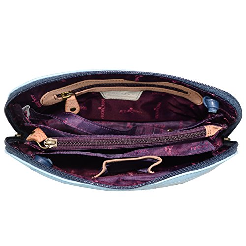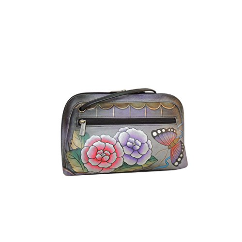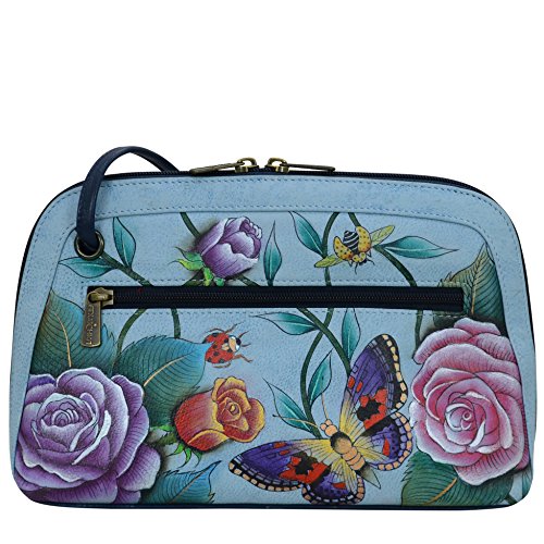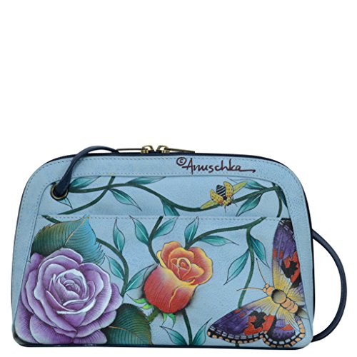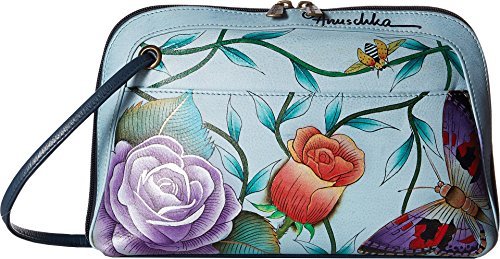 Like no other, a unique Anuschka® handbag is sure to distinguish your look. Hand painted crossbody bag made of genuine leather. Holds your wallet, sunglasses and personal technology. Single crossbody strap. Crossbody drop: 22" length. Front exterior zip pocket. Rear exterior slip pocket. Platform bottom. Zip around closure reveals two compartments and a center zip divider. Interior lining with a back wall zip pocket and multifunctional slip pockets. Dimensions: 10" wide x 2.5" deep x 7" high. Measurements: Bottom Width: 10 1⁄2 in Depth: 2 1⁄2 in Height: 7 in Strap Length: 45 in Strap Drop: 21 in Weight: 11 oz This product may have a manufacturer's warranty. Please visit the manufacturer's website or contact us at warranty@support.zappos.com for full manufacturer warranty details. Please note, the hardware color and interior lining may differ from the color shown in the photo.Feature