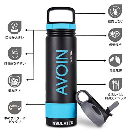 -. Title : AVOIN colorlife ステンレス保温水筒 真空断熱 スポーツボトル 蓋2個付き ストロー付き2WAY 保温保冷 650ml