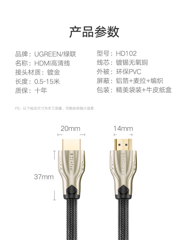 Product Name: Green Alliance HD102 Brand: Green Alliance Model: HD102 Craft: Gold-plated Manufacturer: Shenzhen Green Alliance Technology Co., Ltd. Color Classification: Round Line Flat Line Green Black Coffee Ribbon Network Black Wire Category: HDMI Cable Material: Pure Copper length: 0.5 meters 1.5 meters