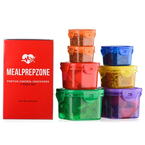 Meal Prep Zone 7 Piece Multi-Colored Portion Control Containers with Guide and Snap-Lids