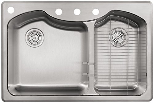KOHLER K-3844-4-NA Octave 33" x 22" Top-Mount Large/Medium Double-Bowl Kitchen Sink with Four Faucet Holes, Stainless Steel