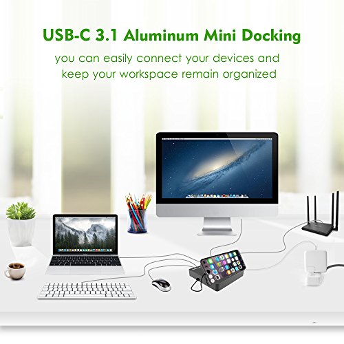 PORTABLE AND FULLY COMPATIBALE - Aluminum material, foldable cover, stronger shockproof pad,the flip style design makes the Mini Dock so portable,and you can take it go and create a workstation wherever you need. Microsoft Windows/Mac OS X/ Chrome OS and hardware system comply with the USB-IF Power Delivery specification.