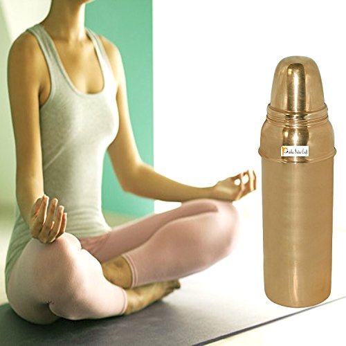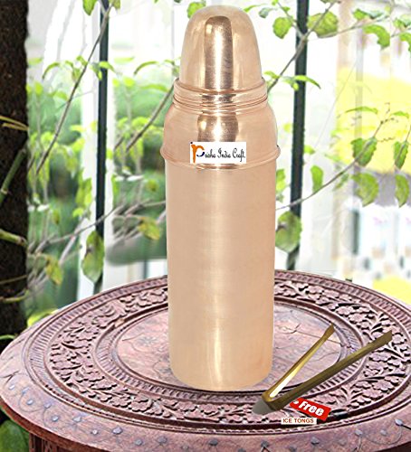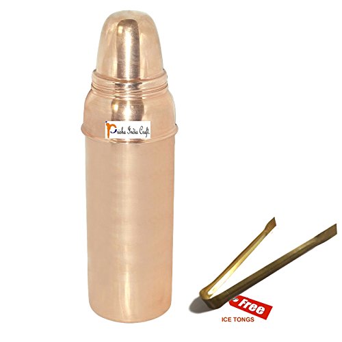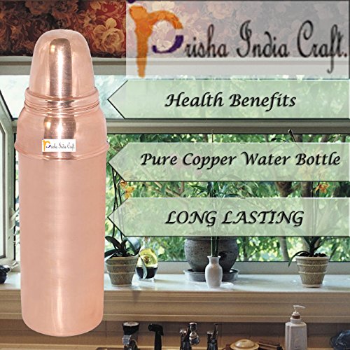 Prisha India Craft Pure Copper Water Bottle, Handmade Copper Vessel Thermos Design with Ayurvedic Health Benefits, 27 Ounce