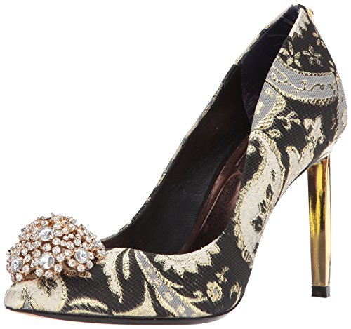 -. Binding : Apparel -. Brand : Ted Baker -. Department : womens -. Feature : Signature style Peetch with dazzling domed jewel and pearl trim on the toe and standout triangular metal heel with mini metal bow at the back counter in luxurious velvets with soft leather lining / Rose Gold sock with Ortholite padding and metallic resin sole -. Label : Ted Baker -. Manufacturer : Ted Baker -. Model : 916808 -. PackageQuantity : 1 -. ProductGroup : Shoes -. ProductTypeName : SHOES -. Publisher : Ted Baker -. Studio : Ted Baker -. Title : Ted Baker Women's Peetch Pump