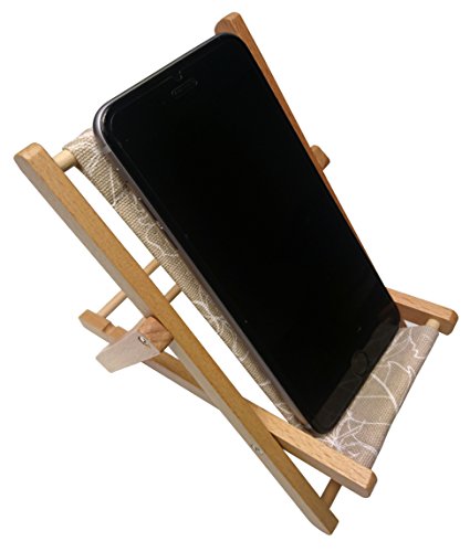 HANPO Cell Phone Holder Wood & Canvas Beach Deck Chair - Desk Stand for Smart Phone 5.5 Inches