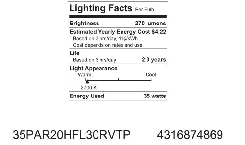 - PAR20 indoor floodlight with medium base for use in directional fixtures such as recessed can lighting