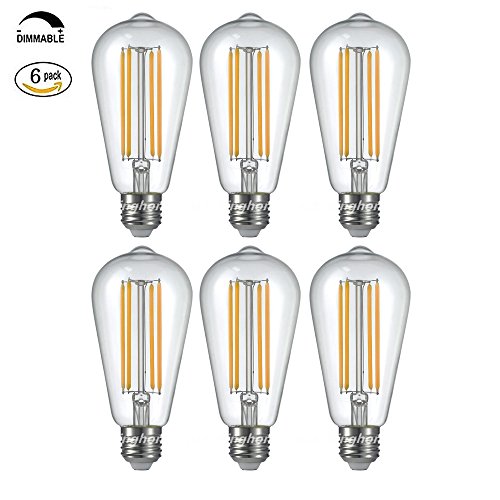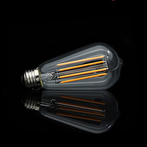- 6W =60 Watts ST64 LED Filament Medium Base E27/26 Edison Style Energy-saving bulb