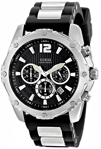 -. Title : GUESS Men's U0167G1 Sporty Silicone & Metal Silver-Tone Chronograph Watch