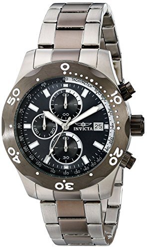 -. Binding : Watch -. Brand : Invicta -. Color : black -. Department : mens -. EAN : 0886678222261 -. Feature : Chronograph functions with 60 second, 60 minute and 1/10 of a second sub dials; date window at 3:00 / Charcoal dial with silver tone and white hands and hour markers; luminous; unidirectional gunmetal ion-plated stainless steel bezel; tachymeter; gunmetal ion-plated stainless steel crown and pushers; flame fusion crystal; stainless steel case and bracelet with gunmetal ion-plated center links / Japanese-quartz movement / Case diameter: 45mm / Water resistant to 330 feet -. Label : Invicta -. Manufacturer : Invicta -. Model : 18018 -. MPN : 18018 -. PackageQuantity : 1 -. PartNumber : 18018 -. ProductGroup : Watch -. ProductTypeName : WATCH -. Publisher : Invicta -. Studio : Invicta -. Title : Invicta Men's 18018 Specialty Analog Display Japanese Quartz Two Tone Watch -. UPC : 886678222261