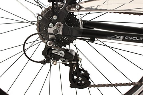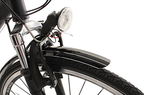 Auch die technische Ausstattung spricht für sich. Dank der 24-Gang-Kettenschaltung von SHIMANO sind Sie auf jede Steigung bestens vorbereitet. Der Multipositionslenker ermöglicht Ihnen das Umsetzen der Hände, wodurch sich auch Ihre Sitzposition ändert. Die Federgabel gewährleistet angenehmen Fahrkomfort - so können Sie auch gerne mal durch leichtes Gelände abkürzen. Der Scheinwerfer wird komfortabel über den Nabendynamo angetrieben. Sie können also unbeschwert auf dem bequemen Sattel Platz nehmen und Ihre nächste Tour starten!