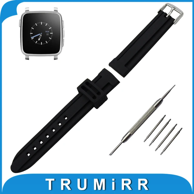 22 미리메터 실리콘 고무 시계 밴드 + 도구 조약돌 시간/조약돌 시간 스틸