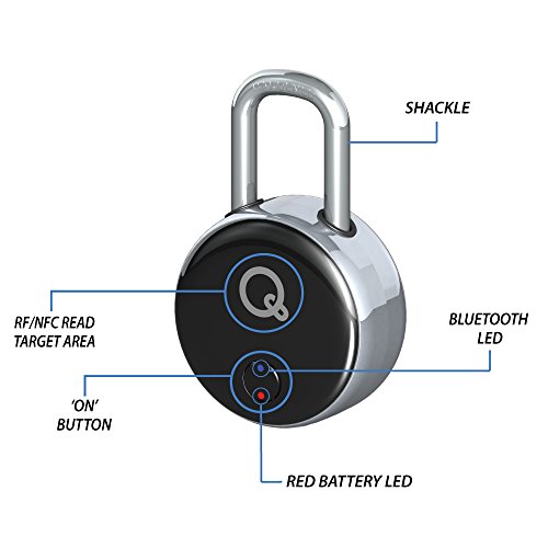 -. Feature : Bluetooth + RFiD + Access Control with Free iOS & Android Smartphone Bluetooth App / Durable die cast zinc alloy housing + Stores up to 50 RFiD wireless keys for quick access / Battery life up to 2 years + internal rechargeable battery / Durable and Weather Resistant / Package includes 1 YELLOW Padlock + 2 Key Cards + 1 FOB + 1 Charging Cable. (Additional Accessories Sold Separately)