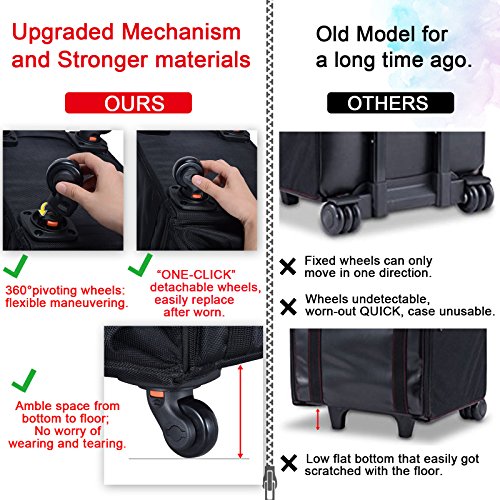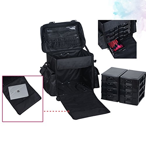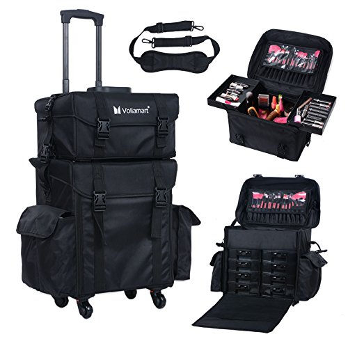 Voilamart Rolling Makeup Case Trolley 2 in 1 Travel Cosmetic Train Cases on Wheels - Nylon Black Bags for Professional Make Up Artist Cosmetics Storage