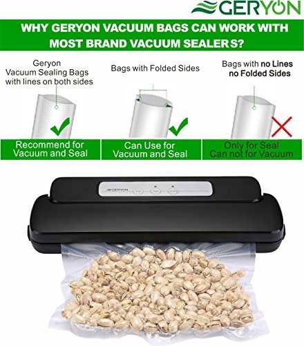 - ONE FOR ALL: Geryon food storage bags, with texture on both sides compatible with most 'Clamp Style' Vacuum Packaging machines