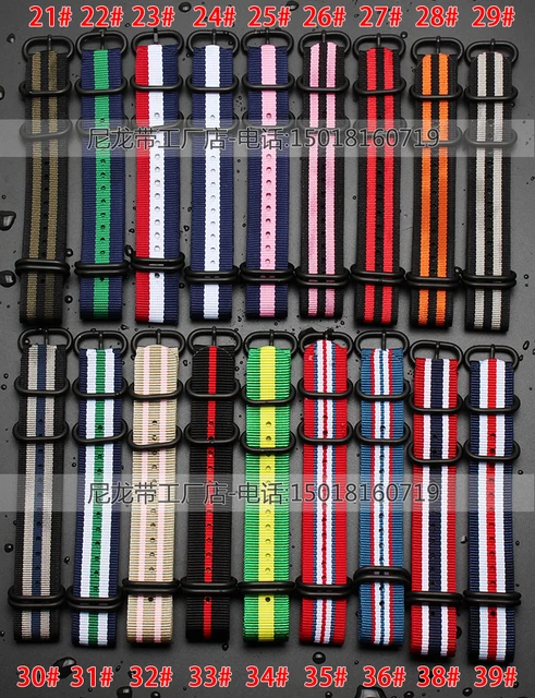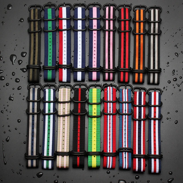 1 개 최고 품질 18 미리메터 20 미리메터 22 미리메터 24 미리메터 방수 나일론 시계 밴드 Nato 줄루어 시계 밴드 스트랩 5 반지 블랙 버클