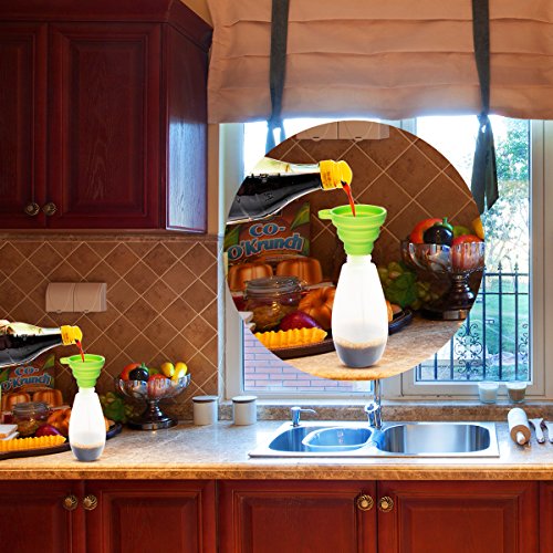 - ►DESIGN : Collapsible funnel has a foldable feature that makes it very small and easy to store in any place.Expand use, fold store. Fold after taking up less kitchen space, easy to store. With it, your kitchen will be more delicate.