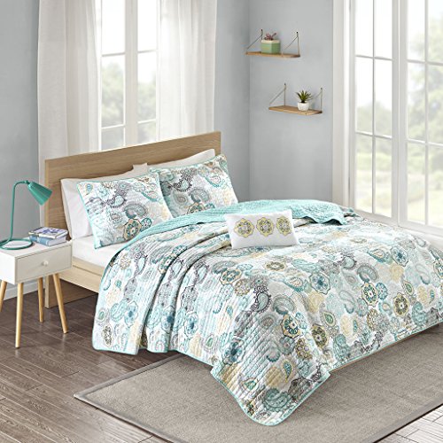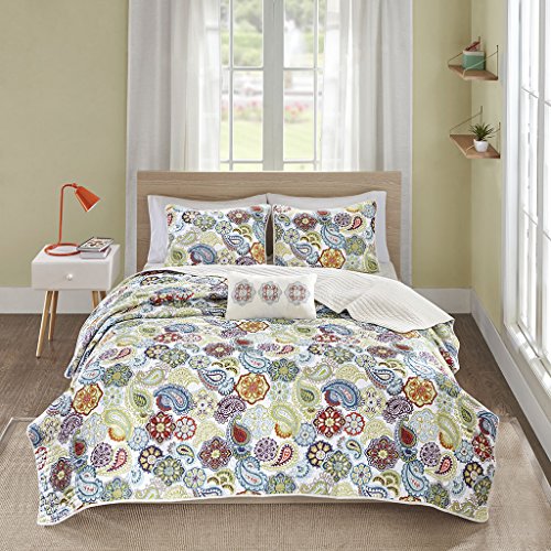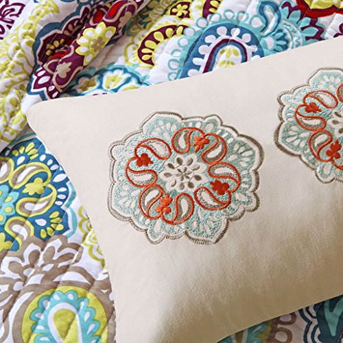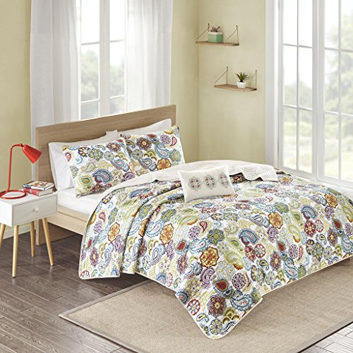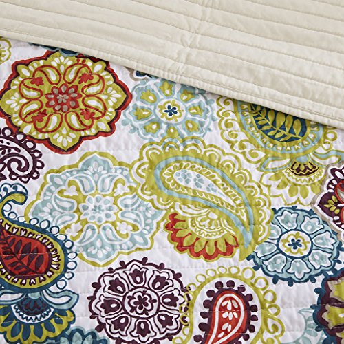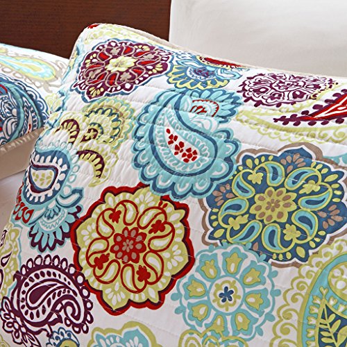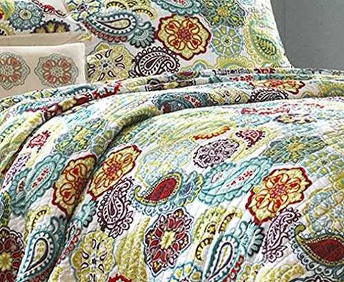 The Tamil coverlet set is a fresh look to the contemporary paisley pattern with an eclectic mix of colorful floral and medallions. Made from polyester microfiber, this coverlet and matching shams are soft to the touch and machine washable for easy care. Completed with an ivory decorative pillow with corresponding medallion feature, this printed quilt set can update your room seconds with its beautiful color palette.Feature