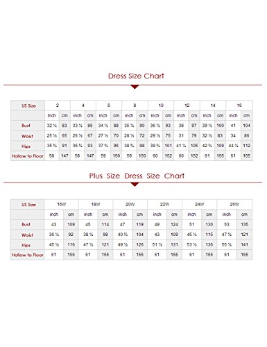 If you can not sure your right size according our size shart, you can send us your measurement details as list. 1.Full Bust _____ inch or ___ cm 2.Waist _____ inch or ___ cm 3.Hips _____ inch or ___ cm 4.Shoulder to Shoulder ____ inch or ___ cm 5.Waist to floor (Waist to Feet) ____ inch or ___ cm 6.Hollow to waist(Front Length Shoulder to Waist) _____ inch or ___ cm 7.Height: _____inch or ___ cm 8.The height of your high heel shoes: _____inch or ___ cm 191.The date you need the dress_____