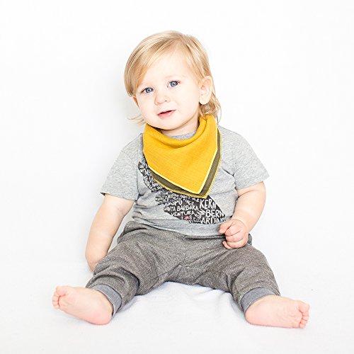 -. Feature : REVERSIBLE BANDANA BIB - Enjoy 2 unique styles in 1 bandana bib! Adorably stylish, beautifully shaped, tastefully sized. Available in 3 reversible colors: khaki/navy, mustard/olive, teal/royal / MULTIFUNCTIONAL - Also use as a wipe cloth and hand towel (has a fabric loop sewn in so you can hang dribble bib from a hook/handle in your powder room, eliminates the need for a step stool) / SUPER SOFT - Our drool bibs are luxuriously soft and get softer every time you wash them. Lightweight, durable, breathable, absorbent, quick to dry, plus 4 snaps for 3-way adjustable neck size! / PREMIUM FABRIC - Made from premium 100% cotton muslin imported from Japan. Keeps baby warm in the winter and cool in the summer / ONE SIZE FITS MOST - Recommended for Ages 3 to 24 months. Remember, as your baby becomes more active at around 6 to 10 months on average, his or her neck will actually get thinner and longer. Please keep this in mind if your Kishu Bib fits a little snug at first. Enjoy!