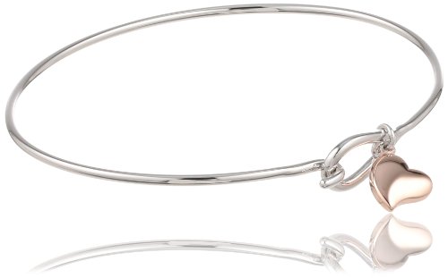 - Title : Bronze and 18k Rose Gold Plated Two-Tone Heart Charm Bangle Bracelet, 7.25"