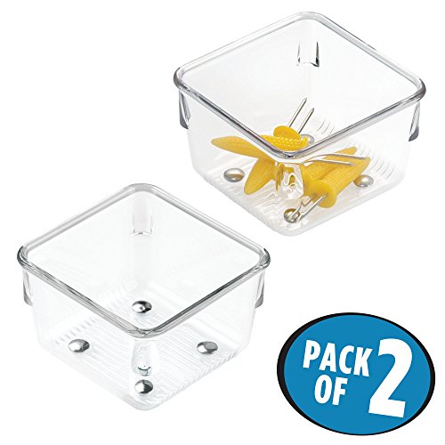 mDesign Square Kitchen Drawer Organizers for Bag Clips, Measuring Cups - Pack of 2, Clear
