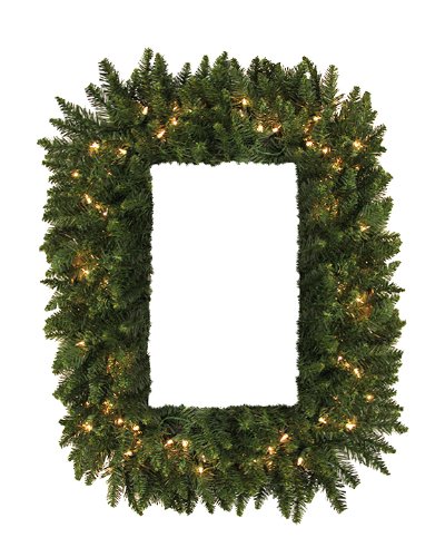 Vickerman Pre-Lit Camdon Fir Rectangular Artificial Christmas Wreath with Clear LED Lights, 36"