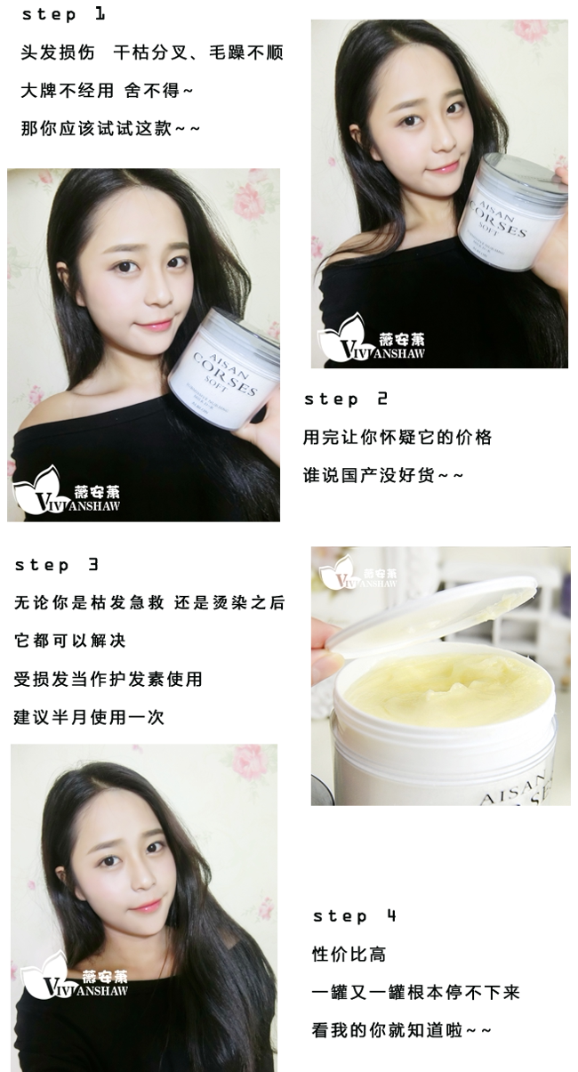 1, rose extract liquid Carefully extracted the essence of roses, you can adjust the skin of the head skin condition, clean hair without harming the hair, plant extracts as hair Siti While for real nutrition also can effectively repair hair damage caused by hot. 2, natural shea butter Natural green solid fat, can promote skin cell regeneration, we have a good moisturizing effect. Long-term use shea butter hair care products, you can Effectively prevent drying split ends, but also to restore and maintain the natural elasticity of the hair. 3, D- panthenol D- panthenol, also known as provitamin B5, hair care and the role of performance for lasting moisturizing function to prevent damage to the hair split ends, increase the density of hair, Improve hair gloss. 4, keratin amino acids Improve damaged hair keratin deletions, containing a variety of amino acids required for hair growth, promote hair growth, improve dry hair dry, no Gloss and easy-off phenomenon. 1, the dye care: shampoo, hair tail is less than a uniform wipe, rinse after a moment. 2, before the hot dyeing care: shampoo, wet hair even wiping a little, without flushing, the operation can be carried out perm slightly dry. 3, dry hair first aid: It is recommended to use exfoliating Essence hair, clean hair, wet hair evenly wipe the hair above the hair knead for 3-5 minutes, with 35 degrees Rinse with warm water, dry 4 daily care: damaged hair as a conditioner, it is recommended to use a half, every day, have your hair healthy and supple unexpected