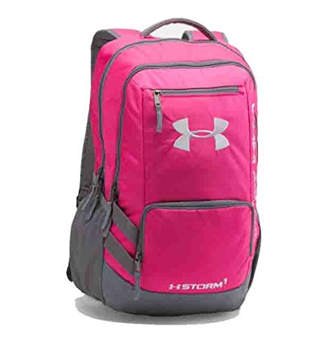 -. Feature : 81% Polyester/19% Nylon / Logoed backpack in water-resistant finish featuring adjustable HeatGear shoulder straps and tough, abrasion-resistant bottom panel / Lined laptop sleeve holds up to 15" laptop / Water-repellent front valuables pocket / Pockets: 3 interior slip, 5 exterior