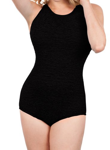 Product DescriptionThis comfortable suit is perfect for water aerobics! It features a portrait back for added support tummy control panel and supportive soft cup bra. Made from our Krinkle® polyester CHLORINE PROOF fabric.0