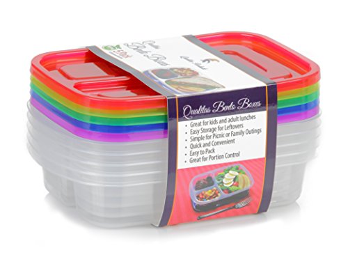 Qualitas Products Premium Kids Bento Boxes - 5 Bento Box Divided Microwave Safe Lunch & Leftover Containers Set for Kids and Adults - Made From US FDA Approved Recyclable Food Grade Plastic