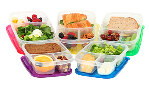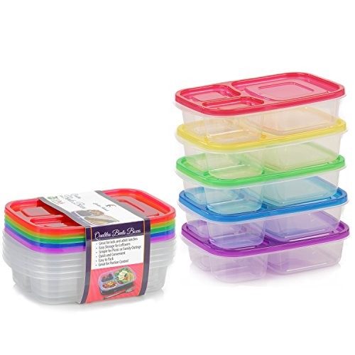 GREAT TIME SAVER FOR PACKING KIDS AND YOUR OWN LUNCHES & SNACKS! 5 REUSABLE CONTAINERS WITH 3 SEPARATE DIVIDED COMPARTMENTS. Your time in the morning and evening is valuable. Our Bento Boxes will save precious minutes and more every day in the morning or evening packing your kids lunches and snacks. Only one sealable container with 3 compartments to hold a variety of lunches and healthy snacks. Let our Bento Boxes motivate you to pack yours and your family’s healthy lunches and snacks.