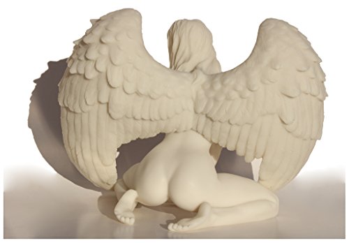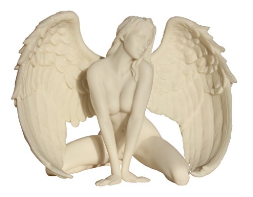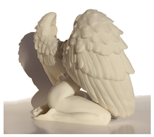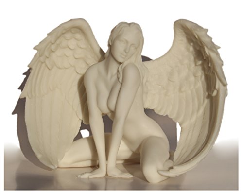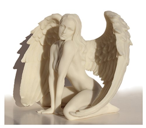 6.88 Inch Winged Nude Female Kneeling with Hands in Front, White