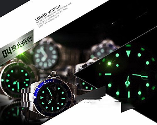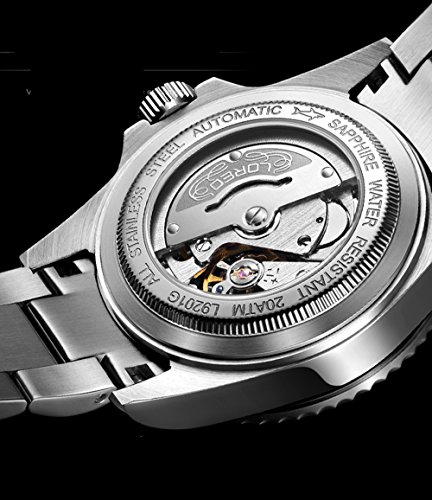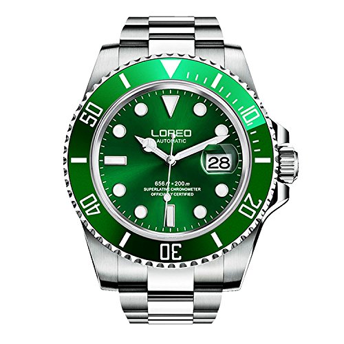 -. Title : LOREO Mens GMT Silver Stainless Steel Sapphire Glass Green Rotating bezel Men's Automatic Watch