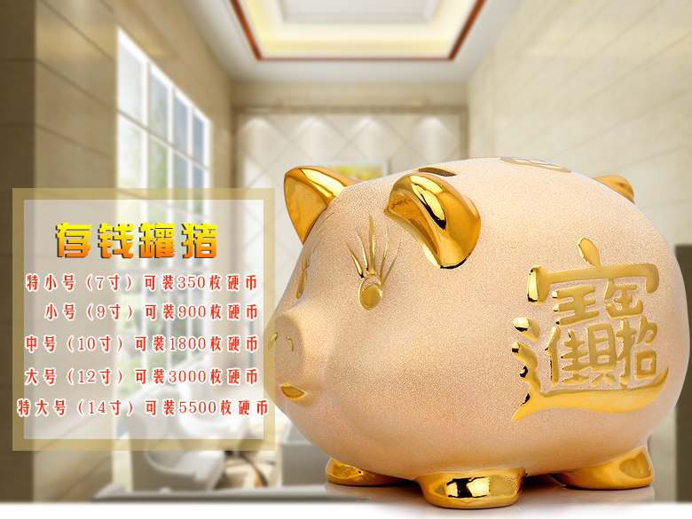 超大号可爱招财猪存钱罐生肖摆件金猪工艺品创意酒电视柜生日礼物