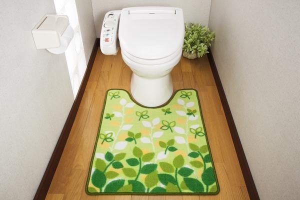 明るいグリーンのトイレマットでトイレを癒しの空間に♪裏面に滑りにくい加工を施しているので、横ズレしにくいです!!