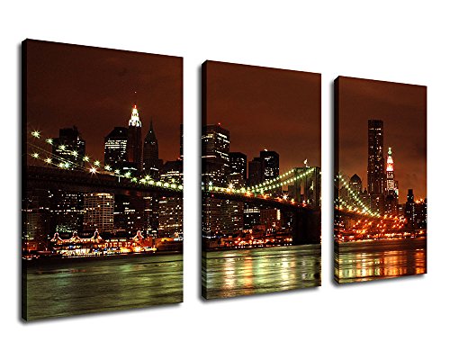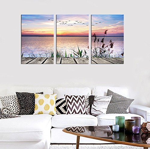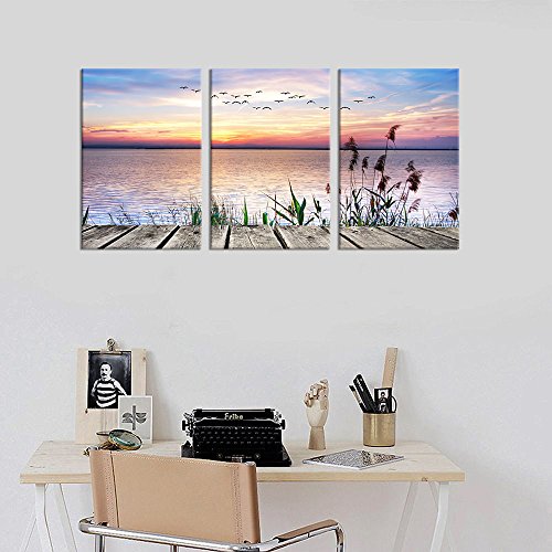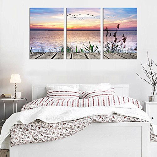 Vibrant Bridge Sunset Sea Lake Wall Art Canvas Painting Framed and Ready to Hang for Home DecorFeatures: