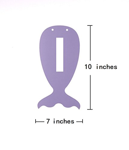 -. Feature : 1:Easy and fun to hang and assemble / 2:Mermaid tail banner comes in two pieces.include happy banner and birthday banner. / 3:Most nice banner:great for kid birthday, wedding party, bridal showers,bachelorette parties,hens nights decorations supplies / 4:Each mermaid tail is 10 inches long and 7 inches wide.