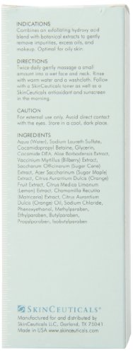 Skin-refining gel cleanser combines exfoliating 1% hydroxy acid blend with botanical extracts to gently remove impurities, excess oils, and makeup