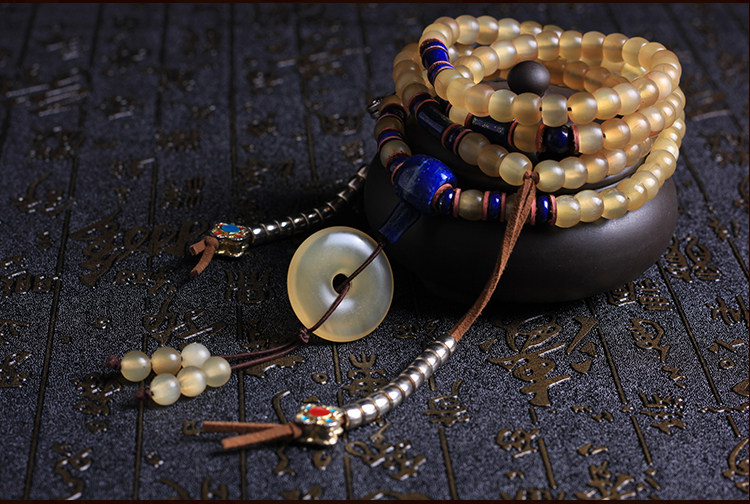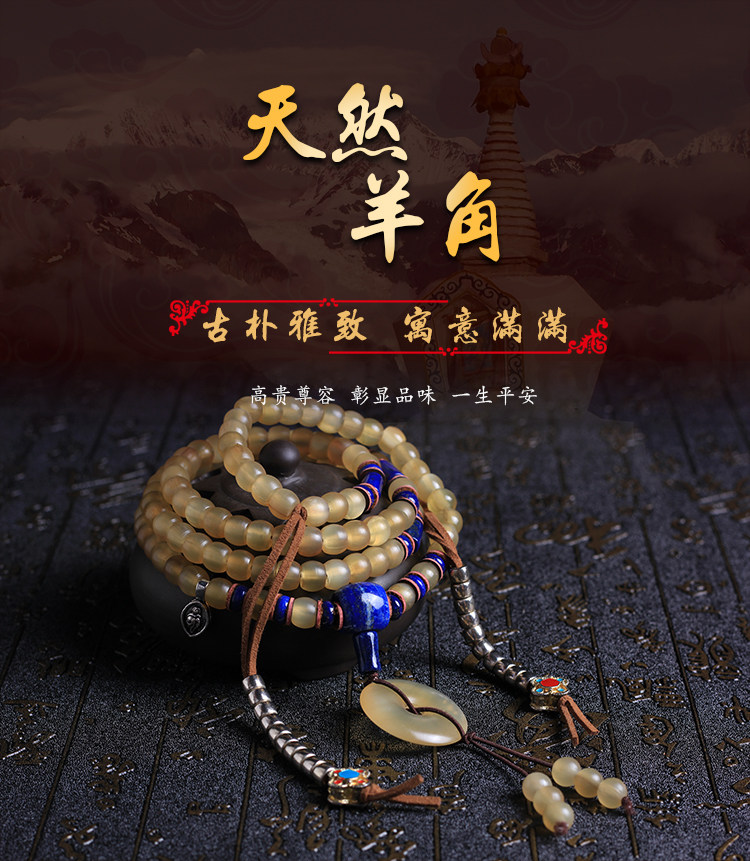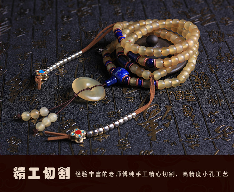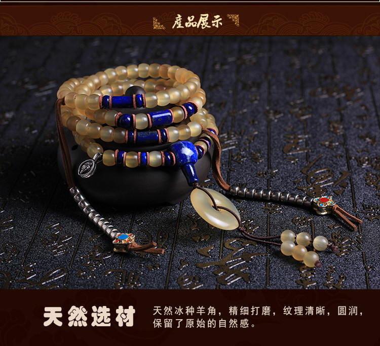 天然藏式羊角手链佛珠108颗手串佛珠手链羊角血丝老料羊角平安扣