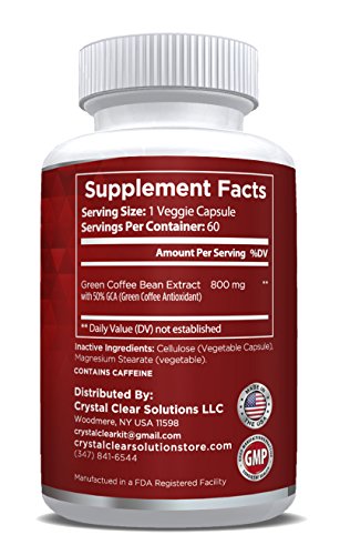 Green Coffee Bean Extract 800mg with GCA Natural Weight Loss Supplement Pills, 60 Caps