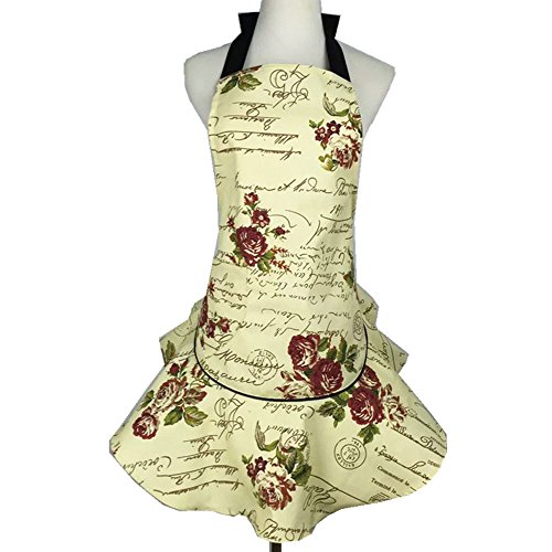 Aprons For Women Plus Size,Retro Vintage Women Cute Black Apron 100% Organic Cotton Extra-long Tie Kitchen Apron for Baking Cooking Gardening 28x 28 inch (beige)