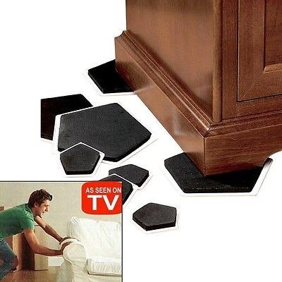 -. Color : Black -. EAN : 0785983737210 -. Feature : Though furniture is comfortable to sit on, it can do destruction to floors. Moving the furniture to / Protects floors from furniture legs / Allows furniture to slide with ease. One person can push heavy furniture / One person can push heavy furniture. Works on vinyl, carpeting, wood floors and ceramic tile / Included: Four (4) Large furniture sliders, Four (4) Small furniture sliders -. Label : Destinie -. Manufacturer : Destinie -. ProductGroup : Home Improvement -. ProductTypeName : HARDWARE -. Publisher : Destinie -. Studio : Destinie -. Title : 8 Piece Furniture Sliders Set - Great For Home or Office -. UPC : 785983737210