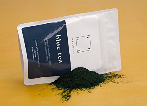 Drink up incredible anti-oxidants, health and energy with Blue Tea, our cold tea tonic and smoothie supplement made from 100% pure blue green algae. This superfood is 70% vegetable protein, contains over 65 vitamins (especially A, B, & K), minerals, and enzymes, and the complete spectrum of eight essential amino acids and 10 non-essential amino acids. It's easily absorbed by the body and is a fabulous anti-oxidant. We like to drink this pre-gym, post-late night, and when we need a health boost. Our favorite smoothie: Blue Tea with pineapple!Feature