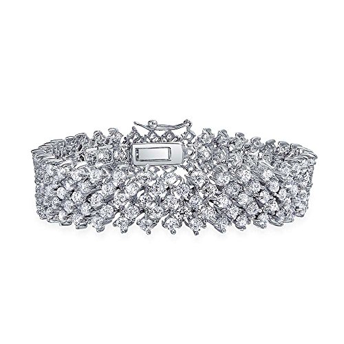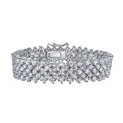 -. Title : Bling Jewelry Clear CZ Bridal Lattice Link Bracelet 7.25in Rhodium Plated