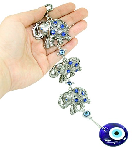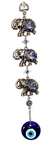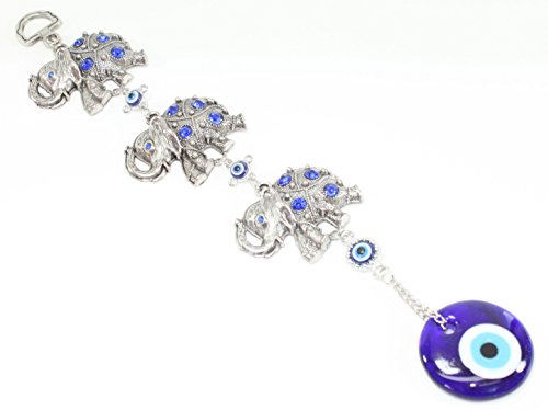 3 Lucky Elephants Turkish Blue Evil Eye (Nazar) Amulet Wall Hanging Protection Home Decor Blessing Gift US Seller (GP7333)