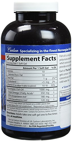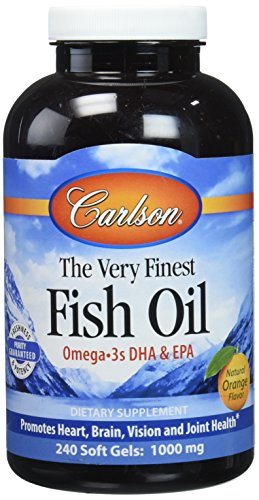Carlson The Very Finest Fish Oil Orange contains Omega-3s in easy-to-swallow soft gelatin capsules
