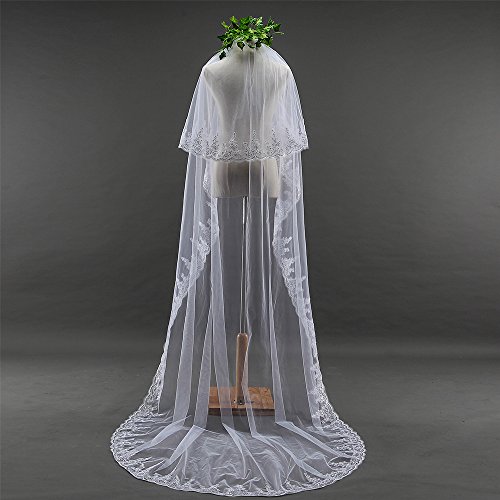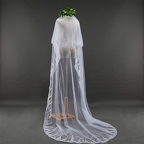 (Hopeverl)/Accessories/Scarves/DIRECT FROM USA/Women's Wedding Long Veil Lace Edge Elegant Tulle with Comb Bridal Veil