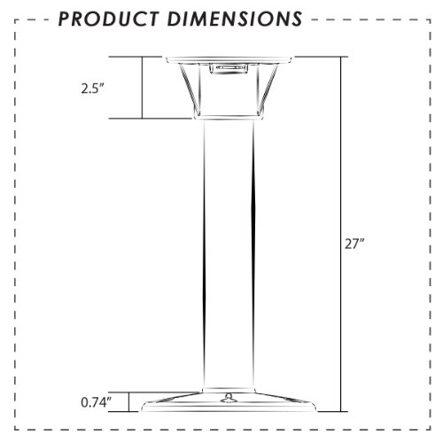 • 2" diameter anodized aluminum leg in 27" height, bases secure with 6 fasteners - Not Included