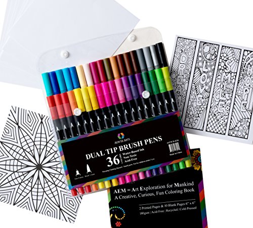 - 🖌 WHILE OTHER ART MARKER SETS are not complete do not work consistently and smoothly do not have a great mix of colors or have a chemical smell the AEM Hi Arts 36 Color Dual Tip Art Markers come complete with markers with a super-fine tip and brush tip comes in a sturdy kit and includes a booklet that combines an adult coloring book and blank art paper pages. The brushes do not have a chemical smell will draw smoothly and have vibrant colors that will provide hours of drawing joy to journal.