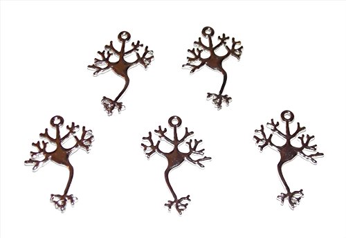 5 Pack of Silver Tone Neuron Charms from Old School Geekery TM – Science Geek Nerd Jewelry Making Charms